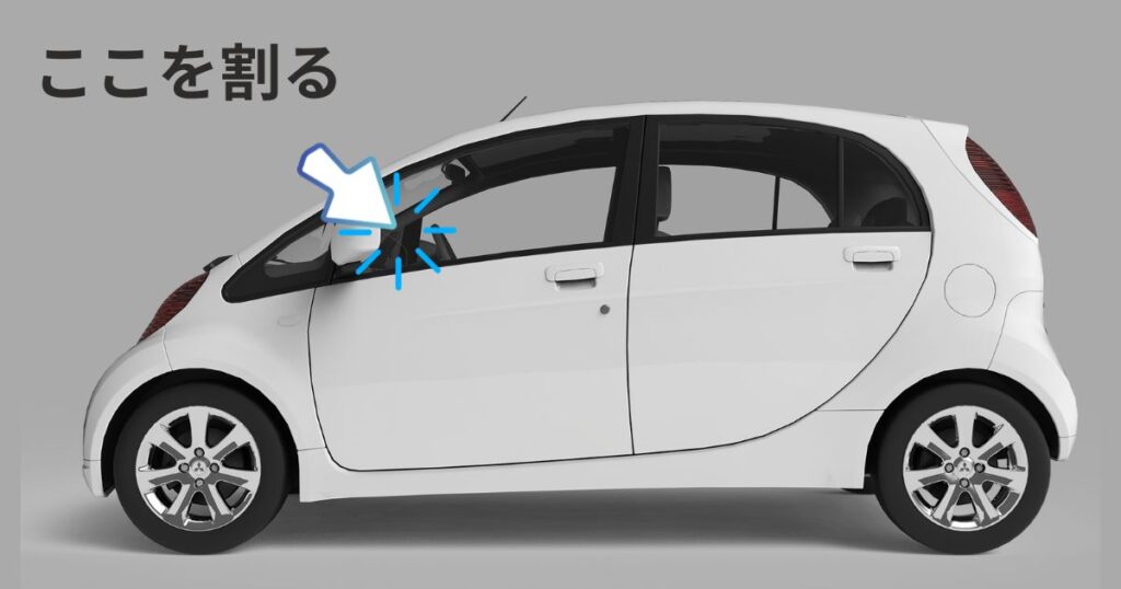 割る事のできるガラスは窓ガラス(サイドガラス)と後ろのリアガラスです。